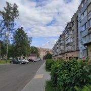 Дом стоит в хорошем месте. Зелёный двор после реконструкции. Новый асфальт, плитка и парковочные места.