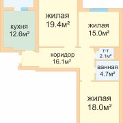 Площадь по СНБ - 90 м2 , общая площадь — 87,9 м2, жилая — 52,4 м2.