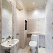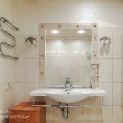 - Раздельный просторный санузел с раковинами и ванной выполнен в светлых тонах, установлены счетчики.