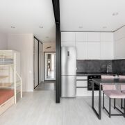 – Гибкий функционал: планировка легко адаптируется под ваши задачи и стиль жизни. В квартире установлена двухуровневая детская кровать, которую при необходимости можно демонтировать без потери пространства.