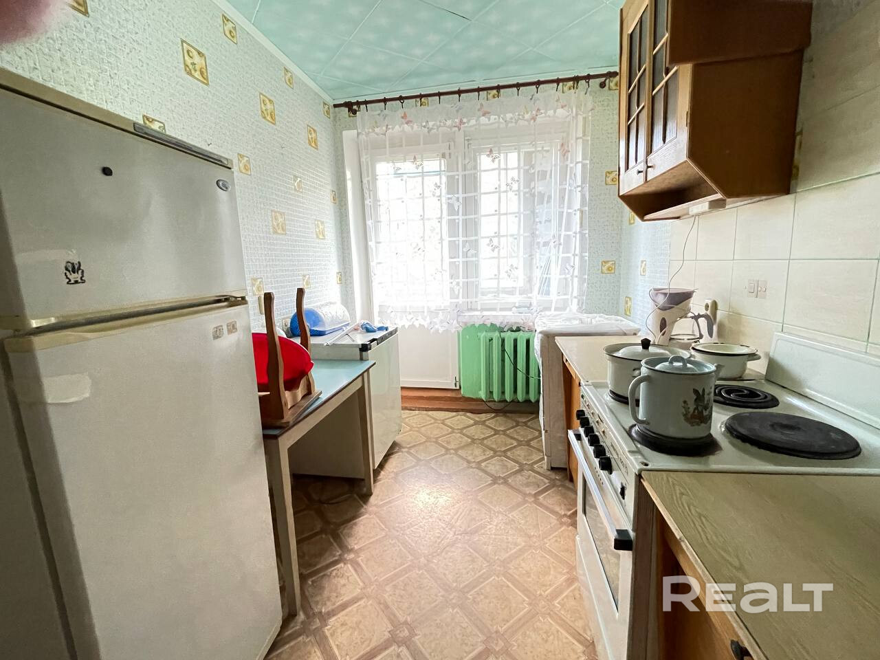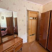 3-комнатная квартира. Комнаты изолированные: 17,6 / 10,7 / 9,9 кв.м. Кухня — 8,7 кв.м. Из кухни и зала выход на застеклённую лоджию 5,6 кв.м. Есть кладовка. Санузел раздельный (2,3 и 1,1 кв.м), требует ремонта. В ванной выведены трубы под душевую кабину, стены оштукатурены, заменена электропроводка. Квартира в центре дома (не угловая), окна на две стороны. Отопление центральное. В двух комнатах установлены стеклопакеты. Дом кирпичный. Рядом лес, есть огород, сарай, гараж.