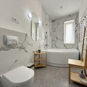 Площадь 174.6 м2 организована для реальной жизни. Основная жилая зона с высокими потолками создает ощущение простора и объединена с большой кухней, идеальной как для ежедневного использования, так и для приема гостей. Ключевой момент: четыре спальни и ванная комната расположены в отдельном, тихом крыле. Это значит, что вы можете принимать гостей или смотреть кино поздно вечером, не мешая спящим членам семьи. Второй санузел рядом с гостиной добавляет удобства для гостей и решает проблему утренних очередей.