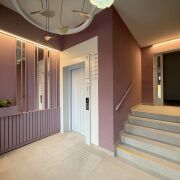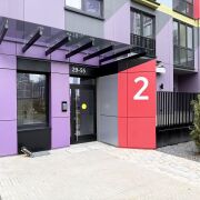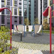 В доме большой бесшумный лифт, проходной подъезд, лапомойка. Двор состоит из пяти домов и имеет закрытую территорию. Во дворе расположены современные детские площадки, зоны отдыха для взрослых и множество зелени.