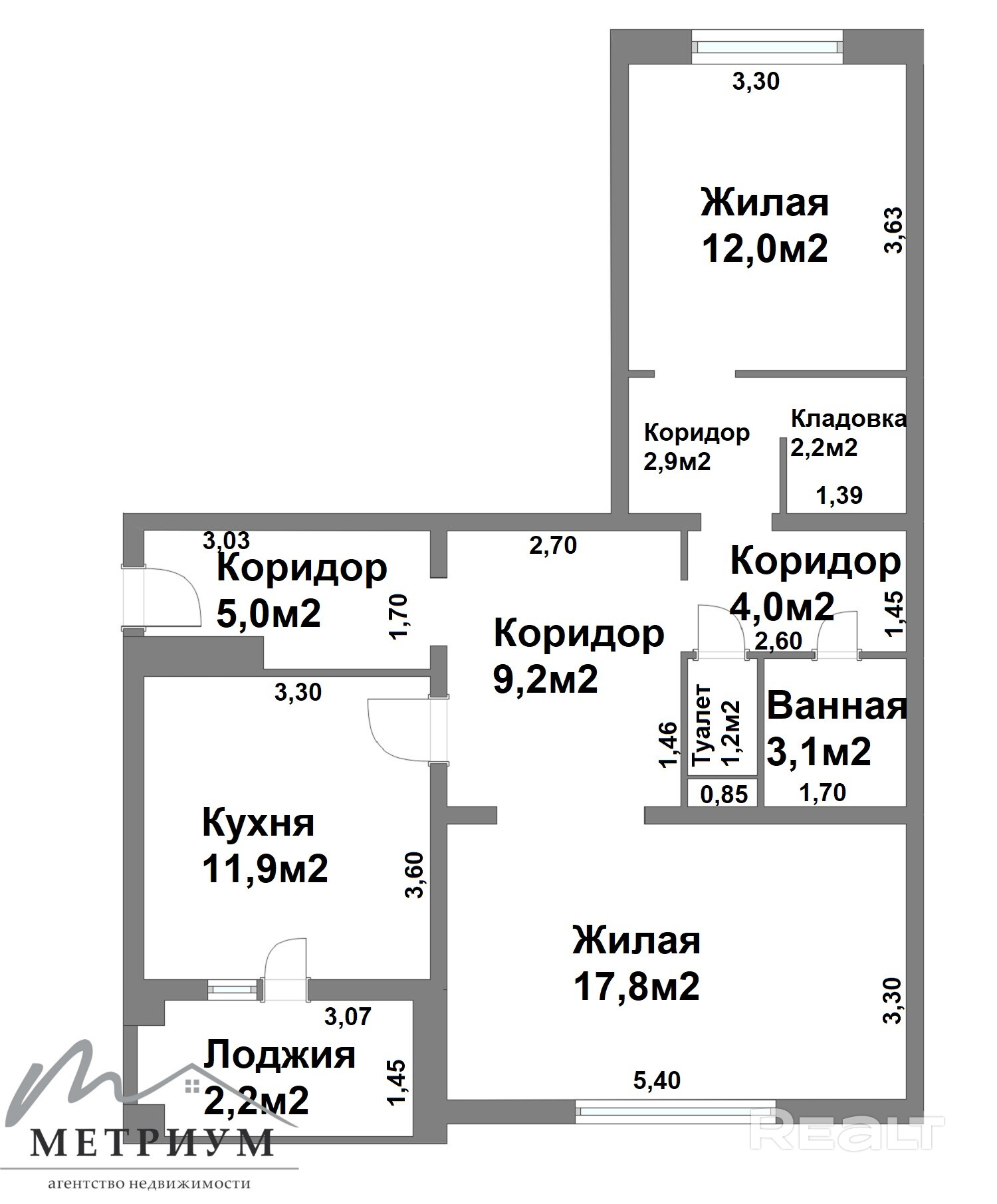 В квартире 2 изолированные комнаты 17.8 и 12 м.кв.