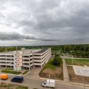 Крытый паркинг на 5 уровней (охраняемый, со шлагбаумом)