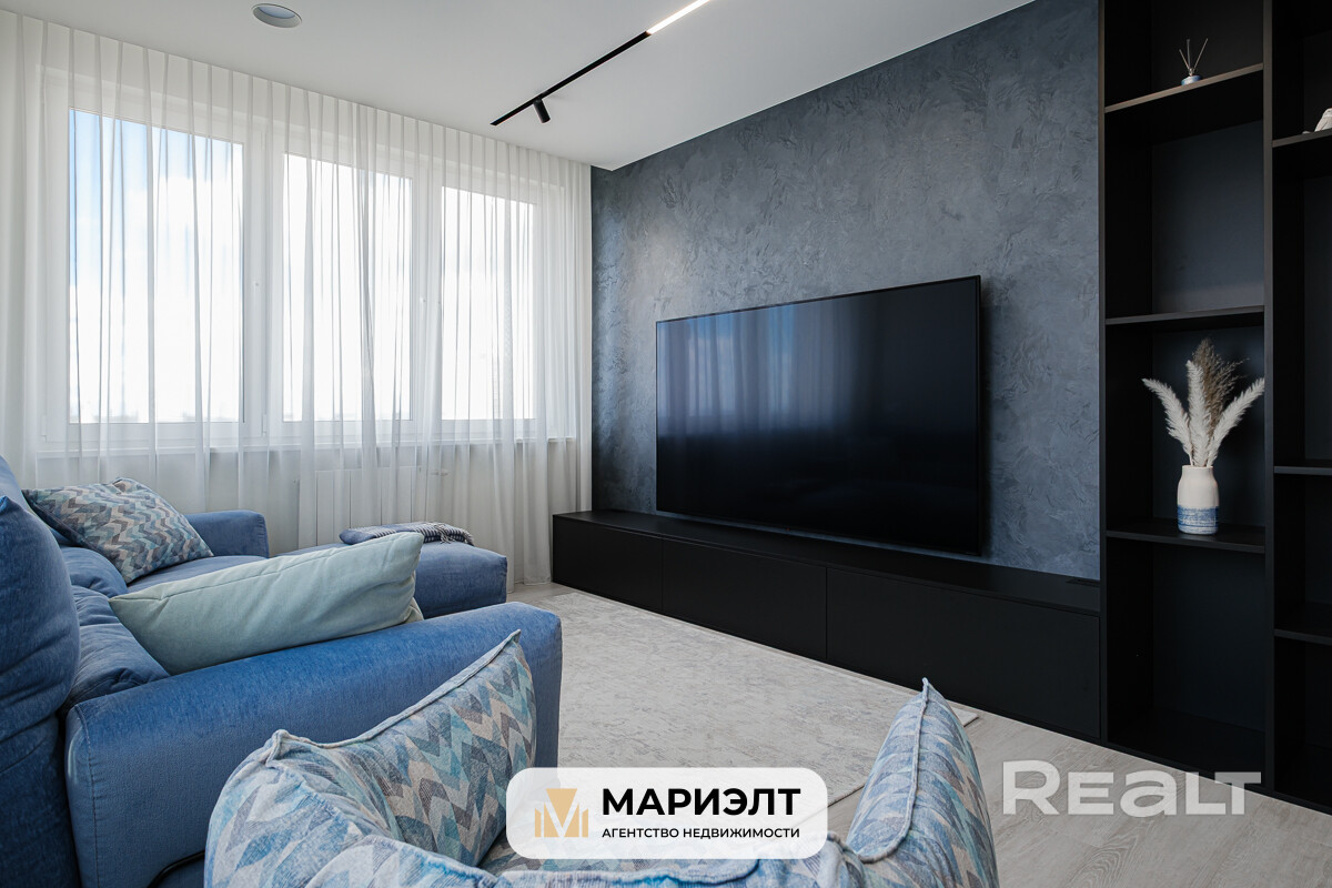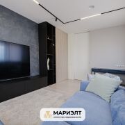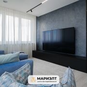 Гостиная - декоративная штукатурка, встраиваемая мебель на заказ, диван mexo на заказ( ломающиеся спинки, пух + memory). Телевизор LG 86 дюймов (больше 2 метров).