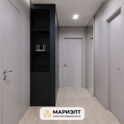 Спальня - декоративная штукатурка, большая кровать mexo + гардеробная со встраиваемой мебелью.
