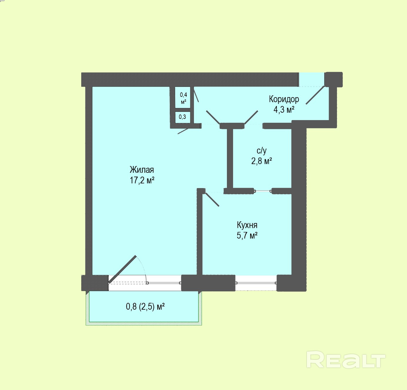 5.7 м²