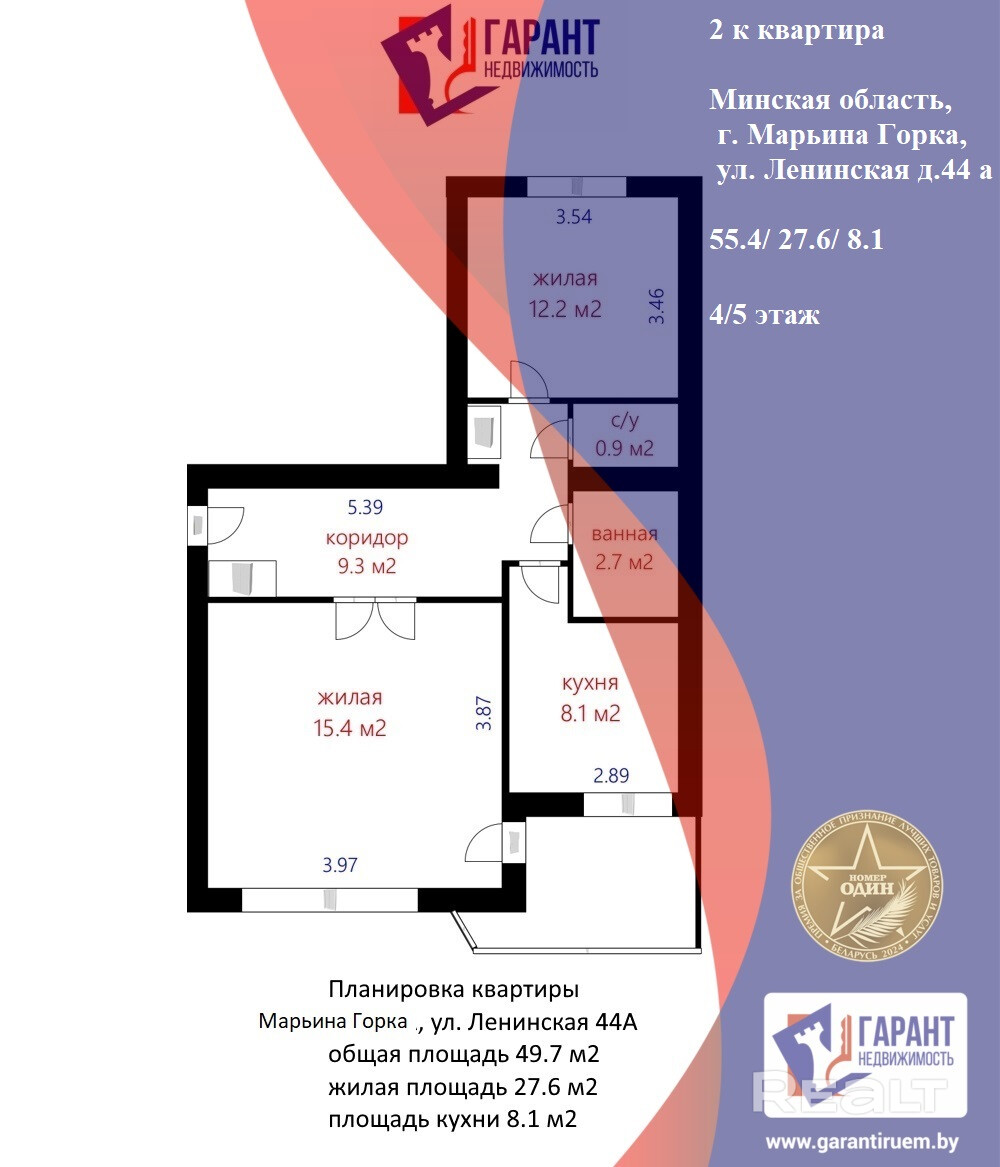 55.4 м²