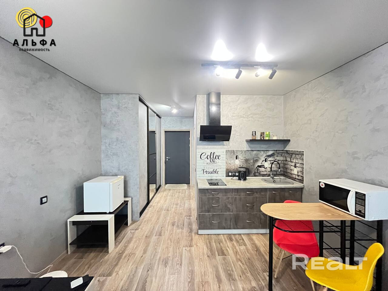 Мечтаете о стильной и комфортной квартире-студии в динамично развивающемся районе Минска? Представляем вашему вниманию уютное гнездышко площадью 31 кв.м. в доме «Мумбаи», расположенном в квартале «Азия» престижного жилого комплекса Minsk World, по адресу ул. Брилевская, д. 37, 6 этаж из 25. Эта квартира – это не просто жилье, а готовое решение для комфортной жизни, освобождающее вас от хлопот с ремонтом и обустройством. Вся мебель и техника уже на своих местах, создавая атмосферу элегантности и уюта с первого взгляда. Стильный дизайн, качественные материалы – все продумано до мелочей. Вам останется только распаковать чемоданы и наслаждаться комфортом. Кухня-гостиная - функциональное пространство, идеально сочетающее в себе зону отдыха и приготовления пищи. Кухня оборудована современной техникой – готовьте с удовольствием! Качественные материалы и элегантный дизайн создадут ощущение спокойствия и комфорта в вашей ванной комнате. Вместительный шкаф-купе - проблема хранения вещей решена! Большое количество места для одежды, обуви и других вещей. Панорамное окно и застекленная балкон - обилие естественного света наполняет квартиру воздухом и простором. Балкон станет вашим любимым местом для отдыха с чашечкой кофе или чтения книги.