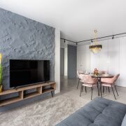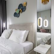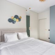 Ремонт яркий, эмоциональный, с характером. Он не только красиво смотрится в кадре, но и прекрасно продуман — каждый элемент на своём месте. Продуманная планировка, много скрытых систем хранения, грамотная электрика и выверенные детали. Использованы только качественные материалы, вся техника — проверенных брендов.