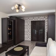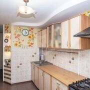 - Качественный ремонт включает замену всей проводки и сантехники, полы покрыты ламинатом и плиткой, окна и балкон остеклены современными рамами ПВХ, потолок — гипсокартон, выполнены два уровня.