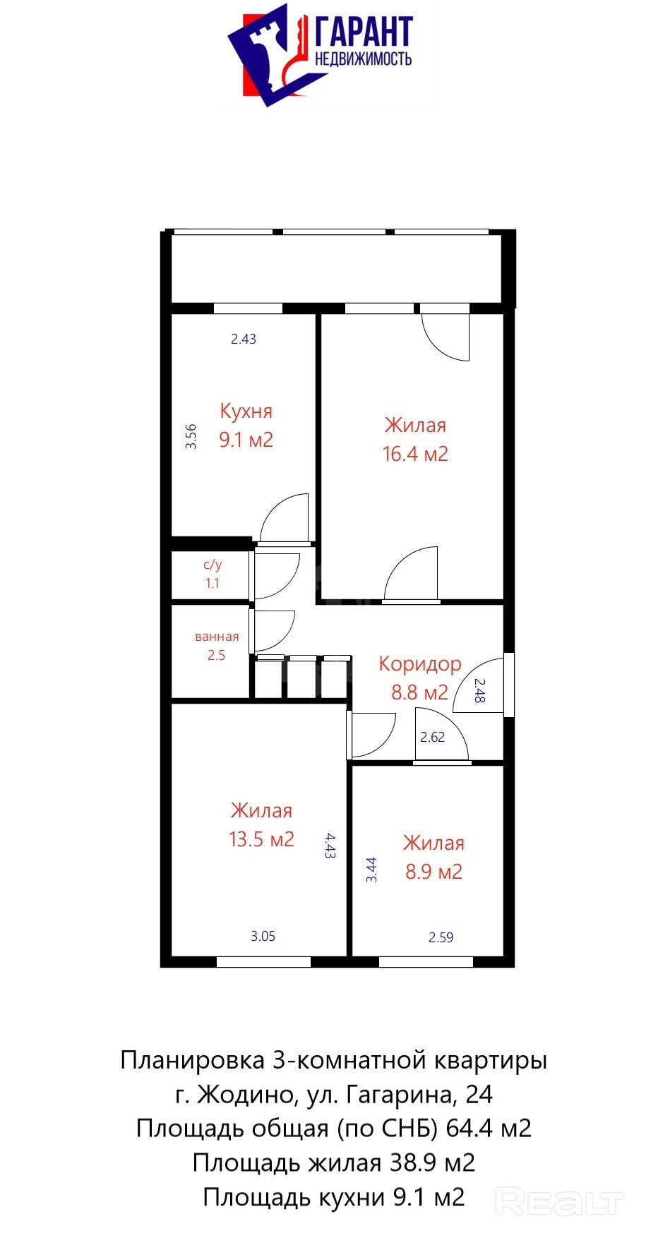 3-комнатная квартира в Жодино на ул. Гагарина д. 24