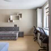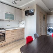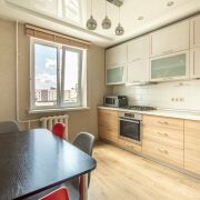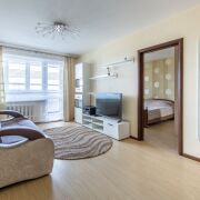 Квартира расположена на 9-м этаже 9-ти этажного дома. Большой тамбур на 2 квартиры. Окна квартиры выходят на обе стороны дома, нет никакого шума. Ремонт в квартире выполнен в светлых тонах. На полу ламинат. Просторная кухня. На 2-х лоджиях выполнен очень качественный ремонт, полы с подогревом.