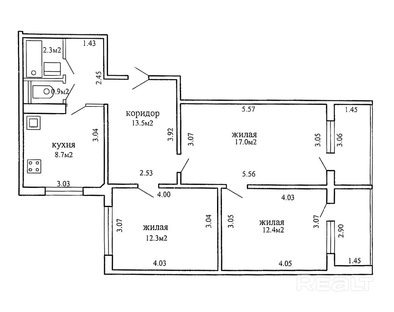 Предлагаем Вам уютную, светлую трехкомнатную квартиру в Лошице по ул. Прушинских, 52.