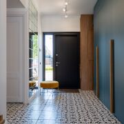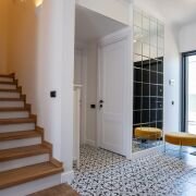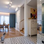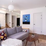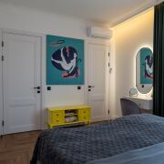 Все межкомнатные двери не стандартного размера, делались на заказ, с магнитными замками и чёрной фурнитурой.
