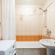 Стены в ванной и санузле облицованы керамической плиткой.