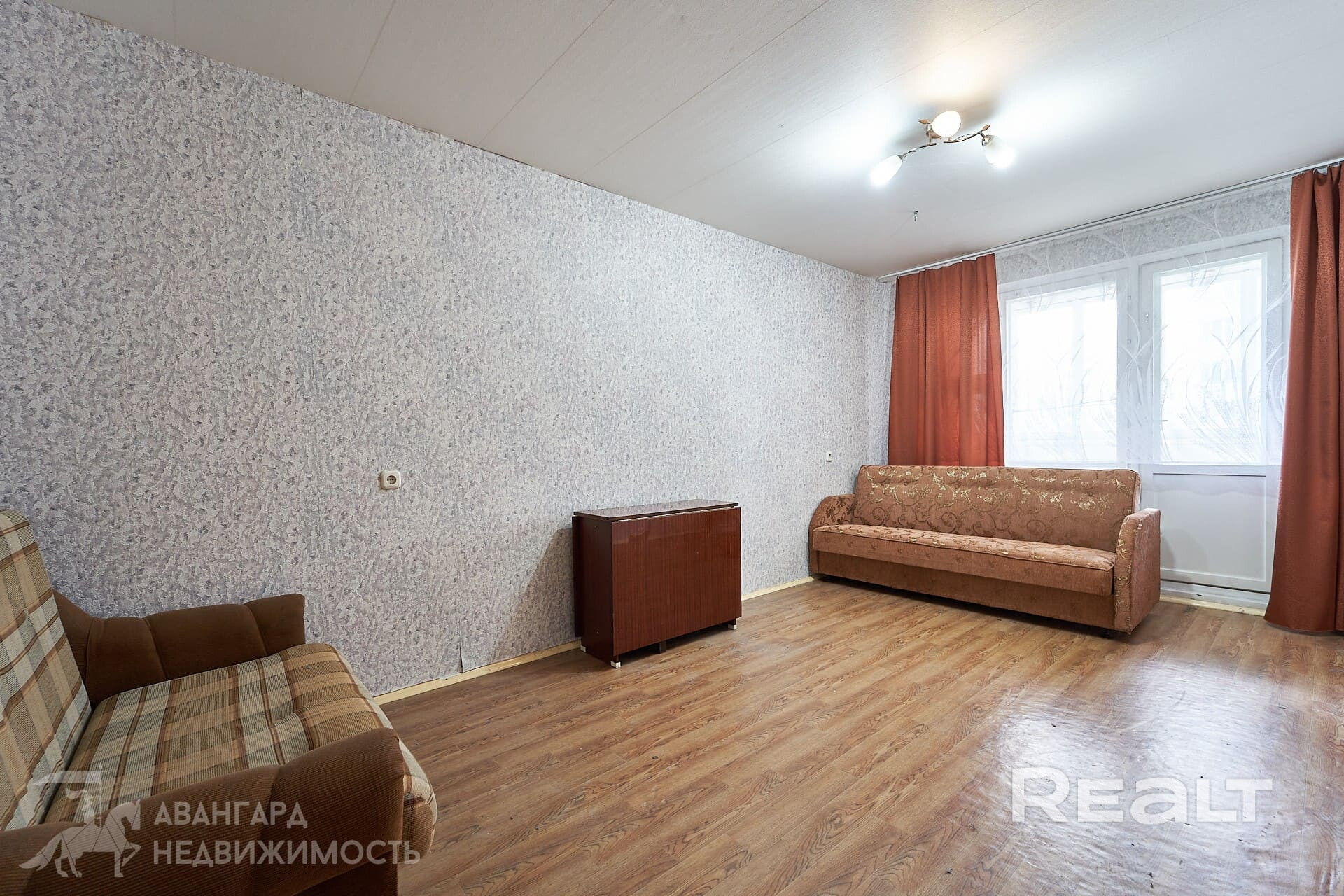 В просторной комнате площадью 17 м2 на полу линолеум, стены оклеены обоями. Площадь и форма комнаты позволяет не только чувствовать себя свободно, но и расставить необходимую мебель и предметы декора, не думая о том, как сэкономить пространство.