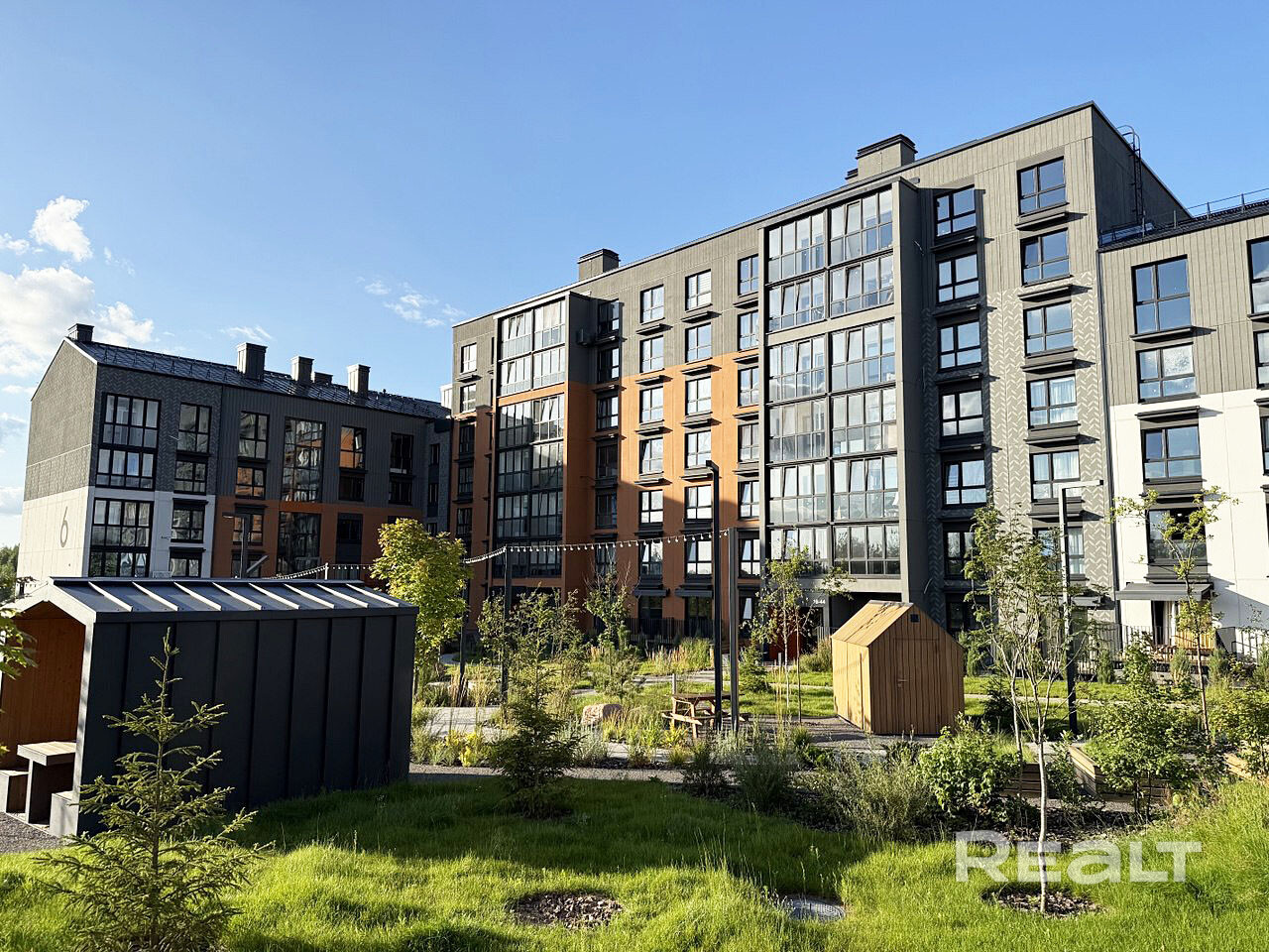 Двор имеет закрытую территорию, парковка по внешнему периметру за шлагбаумом. Во дворе расположены детские игровые площадки, зоны отдыха для взрослых, мини огороды, велобокс и множество зелени.