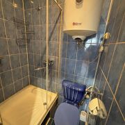 В санузле установлен бойлер для нагрева воды. Стены облицованы керамической плиткой.
