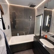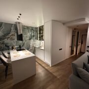 В квартире все продумано до мелочей. Все выключатели в гостиной работают от Алисы. Есть вся необходимая бытовая техника: посудомойка, стиральная и сушильная машина ASKO. Измельчитель. Кран и мойка Omoikiri. Зеркало в ванной с хранением. В выдвижной полке в ванной есть розетка, чтобы не нужно было включать каждый раз фен. Качественная встроенная мебель. Много места для хранения. Тропический душ. Две большие лоджии. Широкий диван, глубиной 120 см, на котором можно лежать вытянув ноги. Кровать 2м