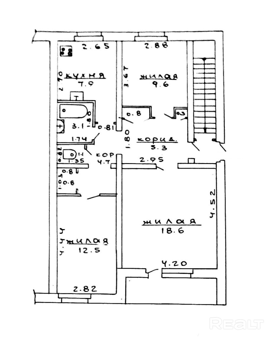 -Грамотная планировка включает в себя 3 изолированные жилые комнаты (9,6 м2, 12,5 м2 и 18,6 м2), которые идеально подходят для семейных встреч и комфортного отдыха, вместительную кухню, площадью 7,9 м2., и раздельный санузел.