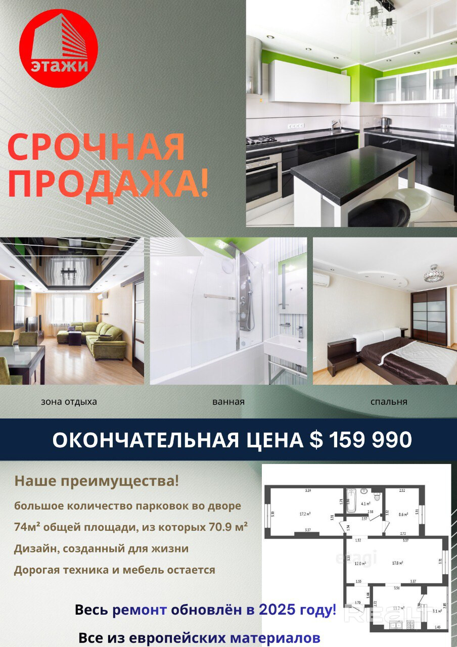 Вся эксклюзивная мебель и техника остаются новому владельцу. Вам остаётся только праздновать новоселье!