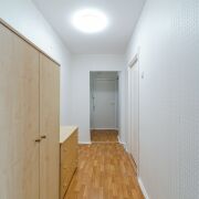Квартира полностью готова для проживания или сдачи в аренду. На полу во всей квартире линолеум, на стенах – обои, окна остеклены деревянными стеклопакетами с хорошей экологичностью. Кухня 8,8 м.кв. оборудована газовой плитой.