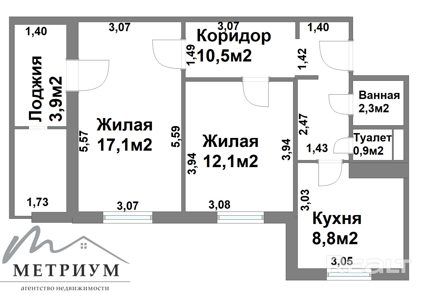 Продается просторная двухкомнатная квартира Лучины 36 в микрорайоне «Лошица-2»