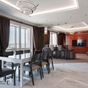 - Искусство в деталях: Стены, одетые в благородную венецианскую штукатурку, дорогие материалы отделки и авторский дизайн проекта говорят о вашем вкусе красноречивее любых слов.