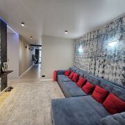 – Выполнен евроремонт из исключительно качественных материалов: напольное покрытие – ламинат от немецкого производителя, в санузлах и лоджии – современная керамическая плитка; по всей квартире вмонтирована подсветка; межкомнатные двери – белая эмаль; входная – надежная металлическая.