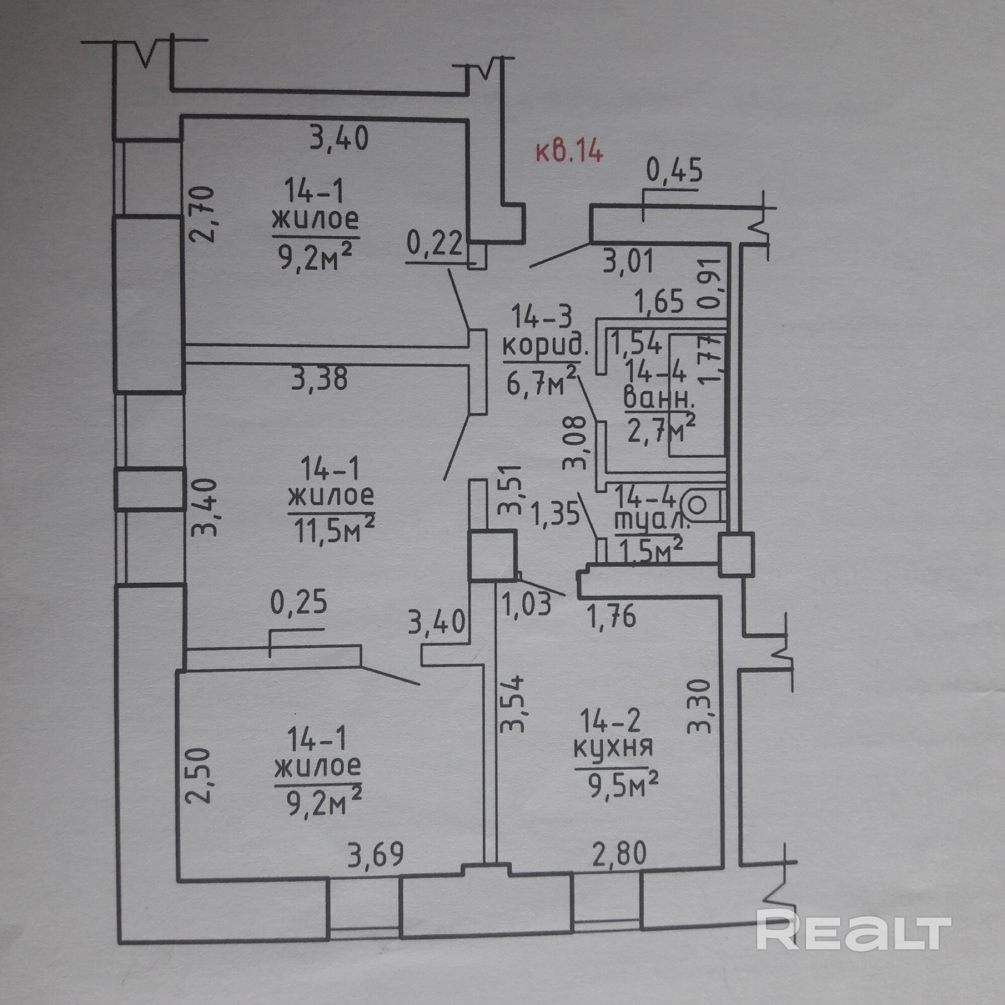 9.5 м²