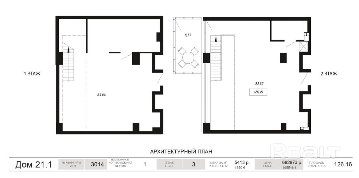 5 295 р.≈ 1 805 $ за м²