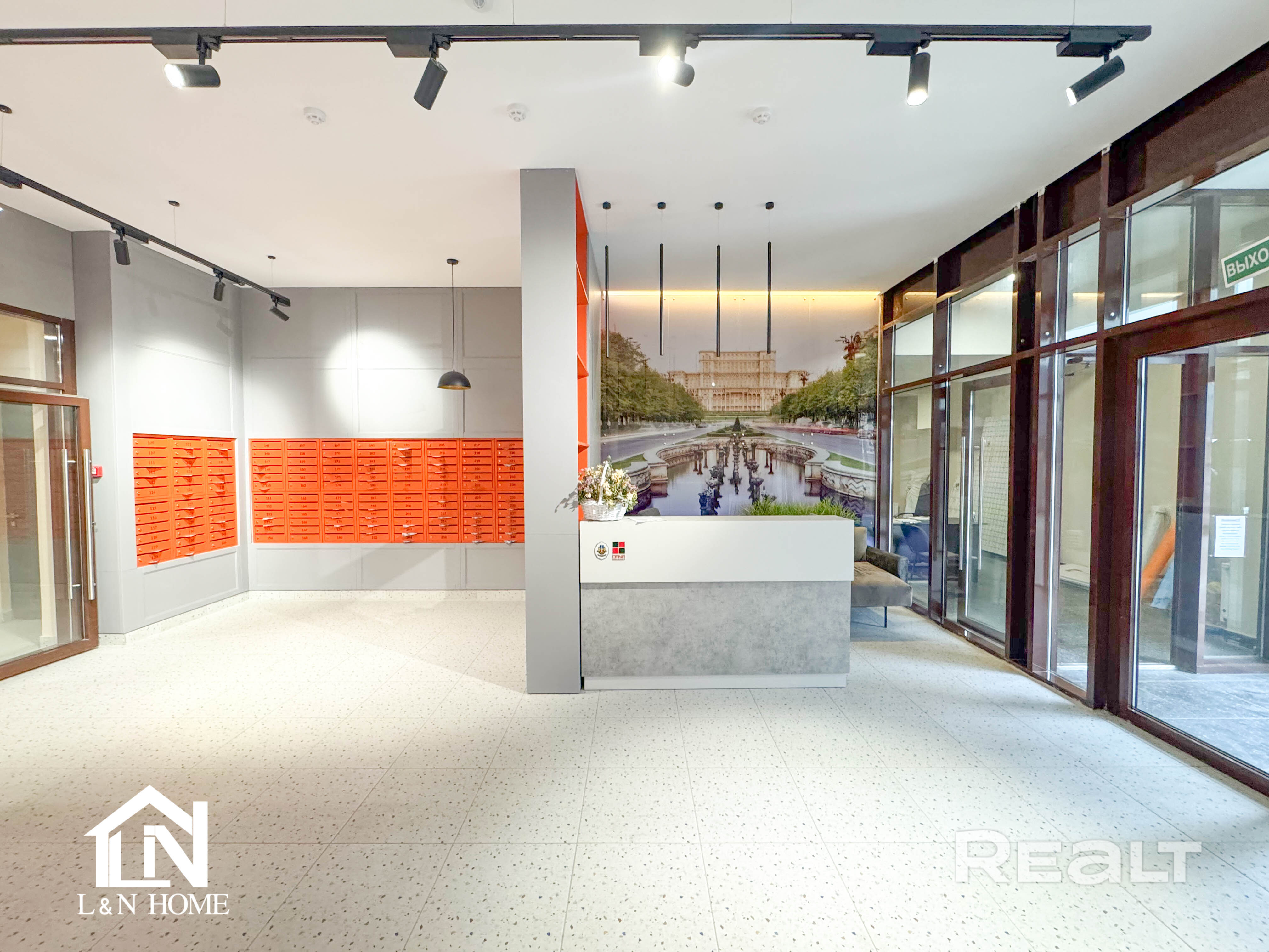 На первом этаже просторное лобби.