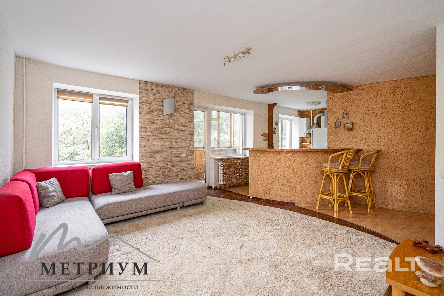 Продается уютная светлая квартира в тихом спальном микрорайоне недалеко от ст.метро Я.Коласа. Тихий зеленый двор, парковочные места есть, но их немного. Рядом находится вся необходимая инфраструктура в пешей доступности: ЦУМ, медицинский центр «Лоде», различные университеты, сады, школы (практически во дворе дома) , бары, кафе,рестораны, магазины, банки, рынок, отличное транспортное сообщение, метро пл. Я. Коласа нескольких минутах ходьбы. Квартира необычная, сделана перепланировка (зарегистированная) из 3 комнатной квартиры в 2-х комнатную просторную с большой гостиной и кухней, в которых 3 окна. Много света, квартира теплая, уютная, с хорошим качественным ремонтом. Продается со всей мебелью и техникой. Квартира отлично подходит как для проживания, так и для инвестиций.