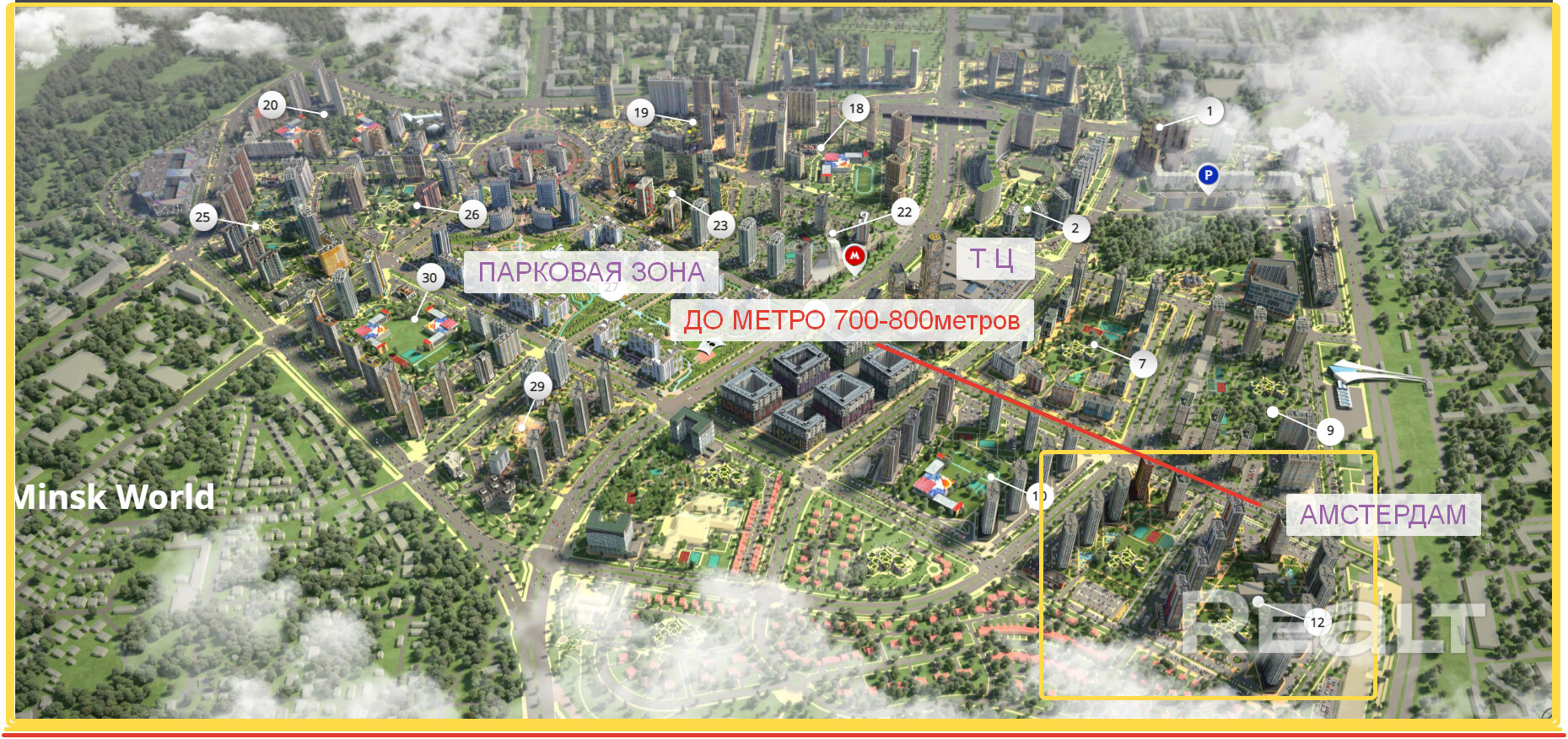 Минск мир - яркий пример строительства по концепции «15-минутного города», которая стала основой для создания Minsk World. Она только набирает популярность в Европе и уже реализуется в Беларуси! Всё, что нужно для жизни будет в пешей или велосипедной доступности