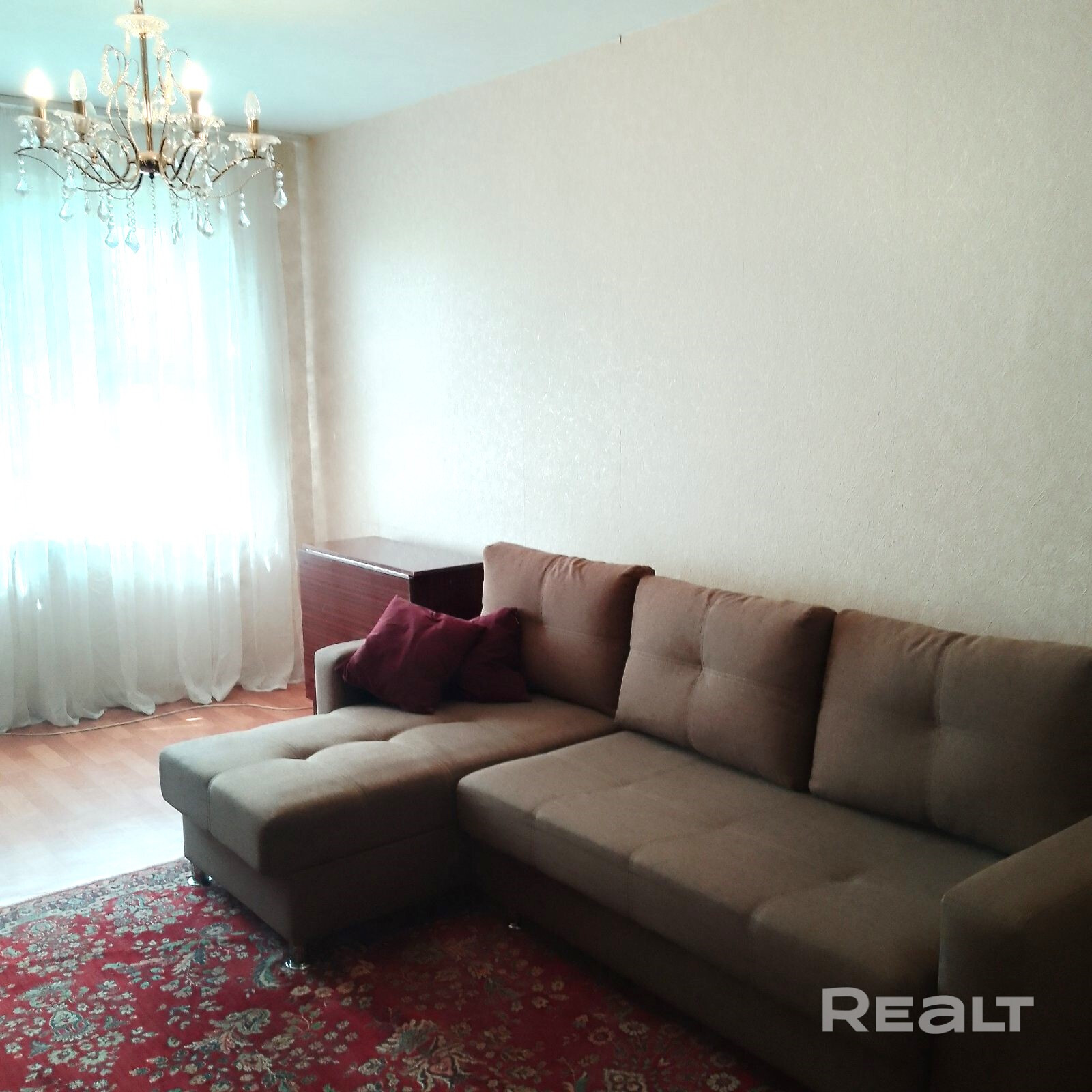 В квартире установлена кухонная мебель, есть холодильник, стиральная машина, угловой диван, шкафы. Мебель и техника в хорошем состоянии пригодны для использования. Доходность квартиры составляет 12 тысяч бел. р. в год при сдаче в аренду.
