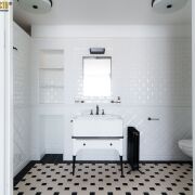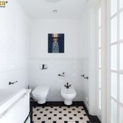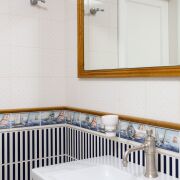Пол – паркетная доска из дуба Finex. Плитка на полу испанская, в санузлах итальянская. На стенах американская моющаяся высококачественная краска California, в рабочем кабинете обои Fornasetti. Сантехническая посуда Villeroy & Boch, инсталяции сантехнические - Geberit. Смесители и аксессуары в санузлах – производство Франция.