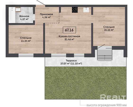 Квартира №1 в жилом комплексе «Зеленая гавань» (Ситихаус 6.7) представляет собой просторное 3-комнатное жилье на первом этаже с террасой площадью 37,07 м2. Высота потолков составляет 2,87 м, что обеспечивает дополнительный комфорт. Квартира без отделки, что дает возможность реализовать индивидуальные дизайнерские решения. Срок сдачи — 3 квартал 2026 года.
