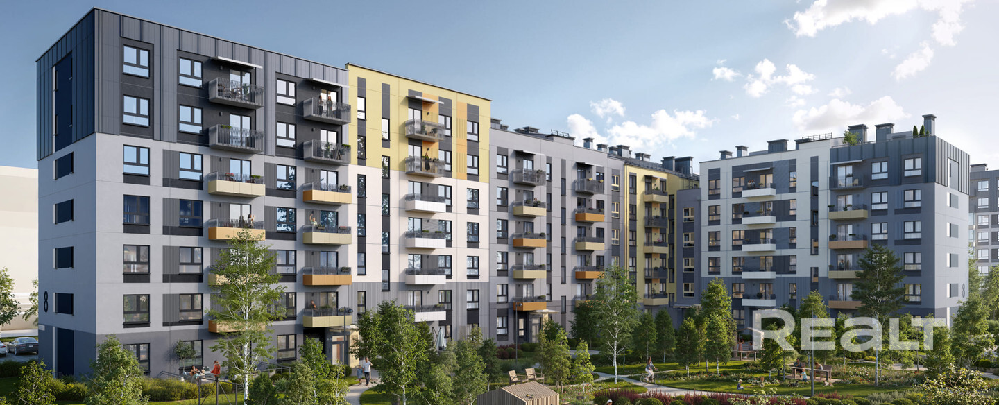 вартира с отделкой Nordic и просторной кухней-гостиной в «Зеленая гавань»