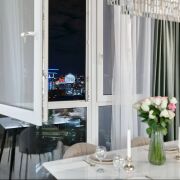 Видовой трехкомнатный пентхаус  с видом на Библиотеку в ЖК Парк Челюскинцев с дизайнерским ремонтом, мебелью и техникой.