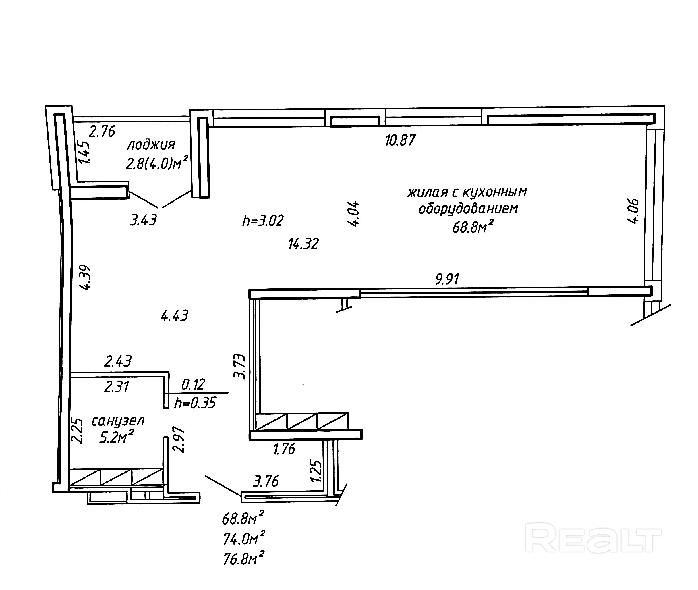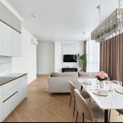 В квартире 2 спальни, коридор, просторная кухня-гостиная, гардероб и уютная лоджия.