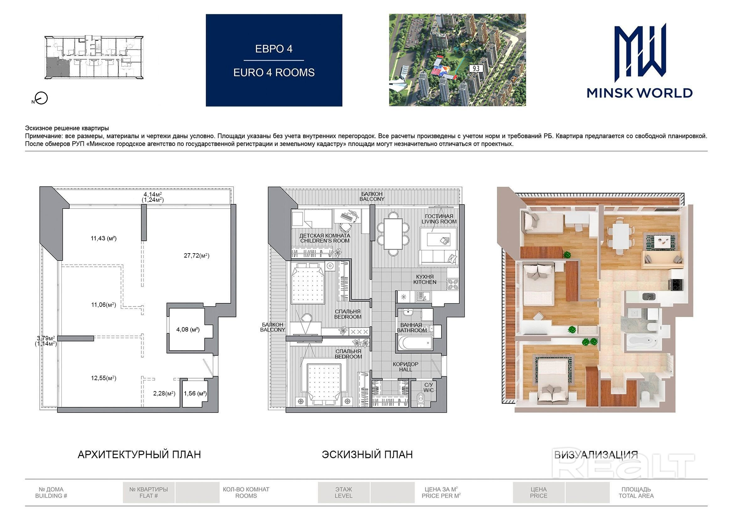 Квартира 21 в Минск Мир / Дом 9.3, площадью 73 кв.м.