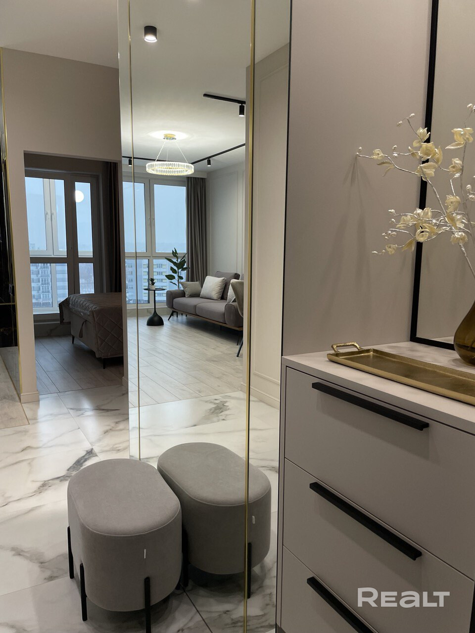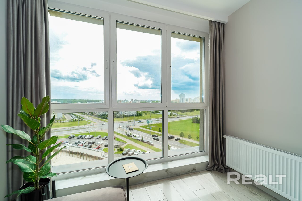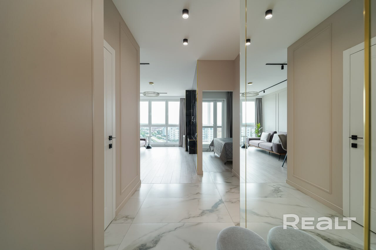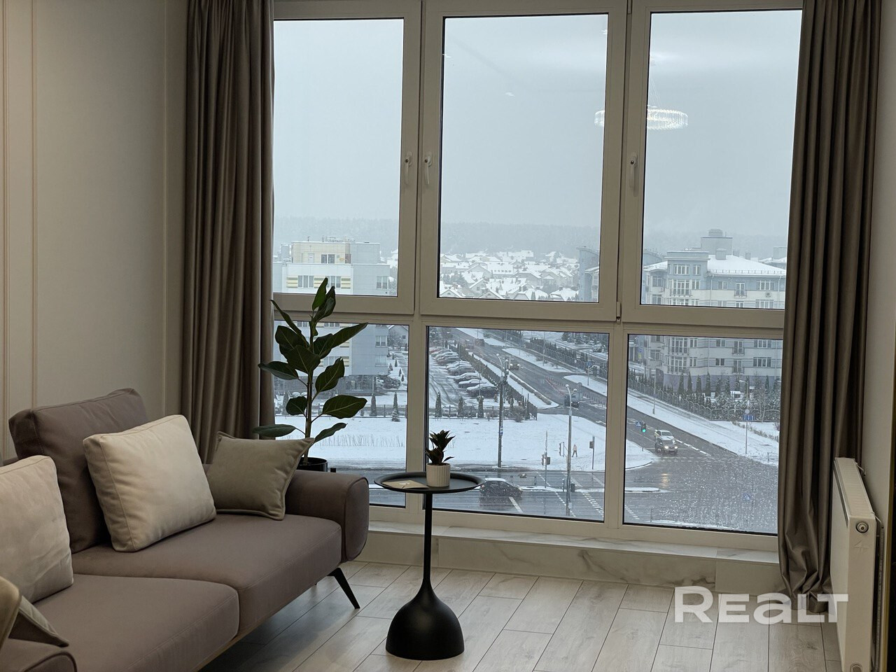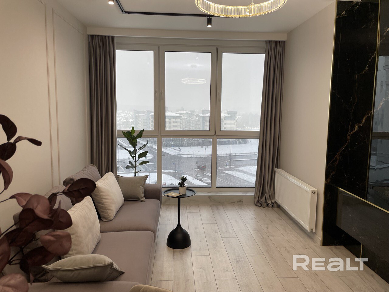 Стильная, абсолютно новая двухкомнатная квартира, с идеальным, дизайнерским ремонтом 2025 года и фантастическим видом из окон на Степянскую водную систему в доме Рафаэль ЖК «Маяк Минска».