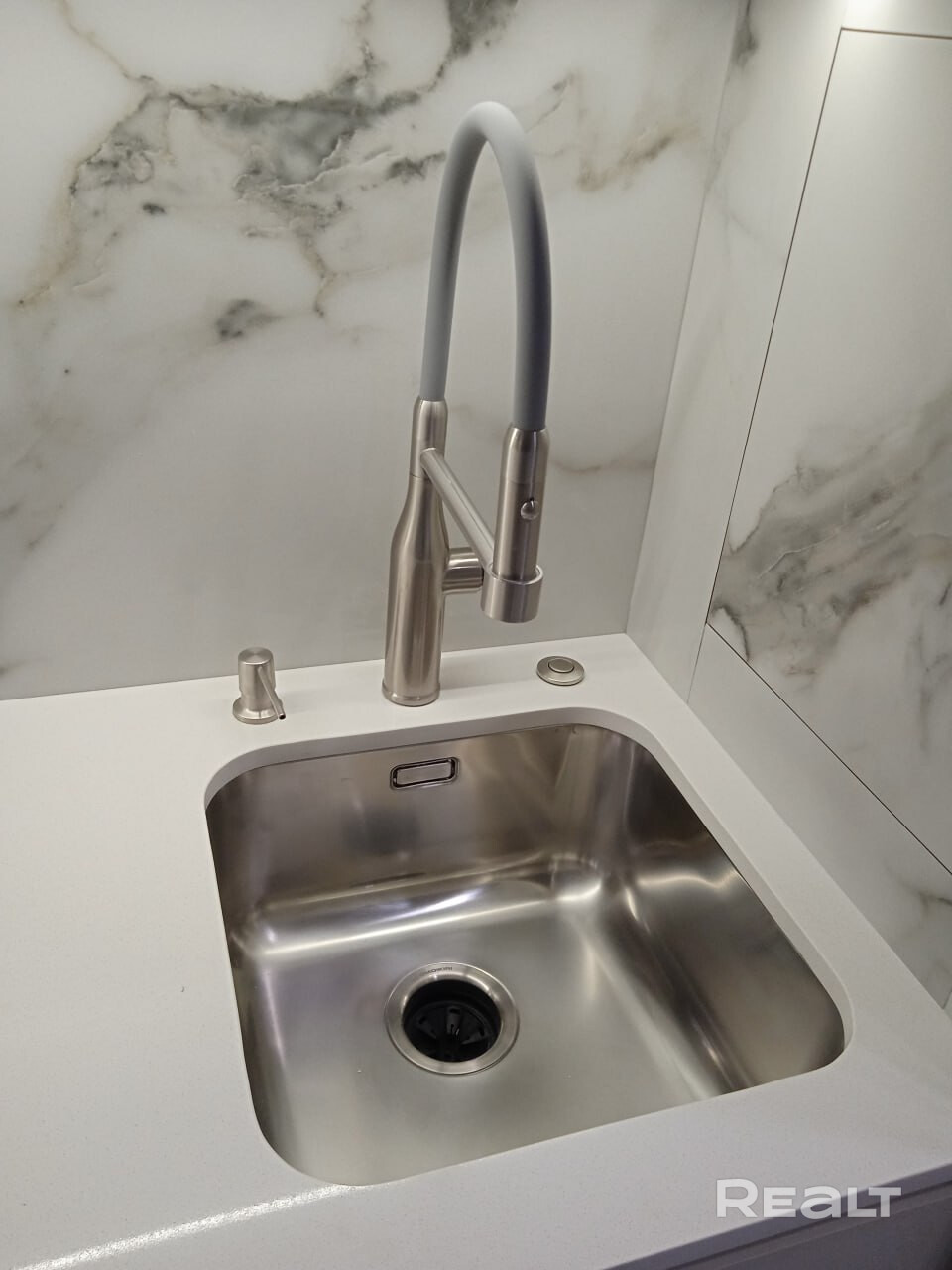 Столешница выполненная из Кварцевого Агломерата, оснащена мойкой Омойкири подстольного монтажа