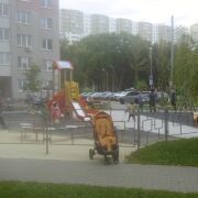 Во дворе оборудована современная детская площадка и установлены спортивные тренажёры.