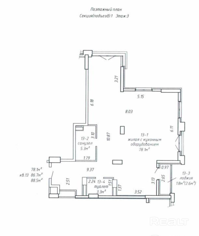 88.5 м²