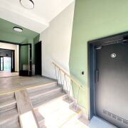 Подъезд проходной и имеет выход на парковку и в замечательный двор. В подъезде есть помещение для хранения колясок и для мытья лап домашним питомцам.