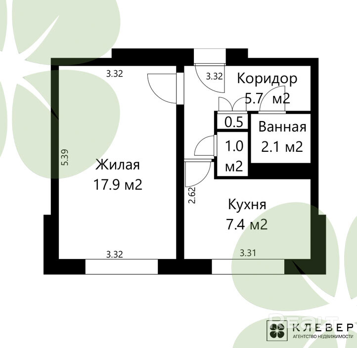 - Комната - 17,9 м2, кухня — 7,4 м2, что идеально подходит для создания уютной атмосферы.