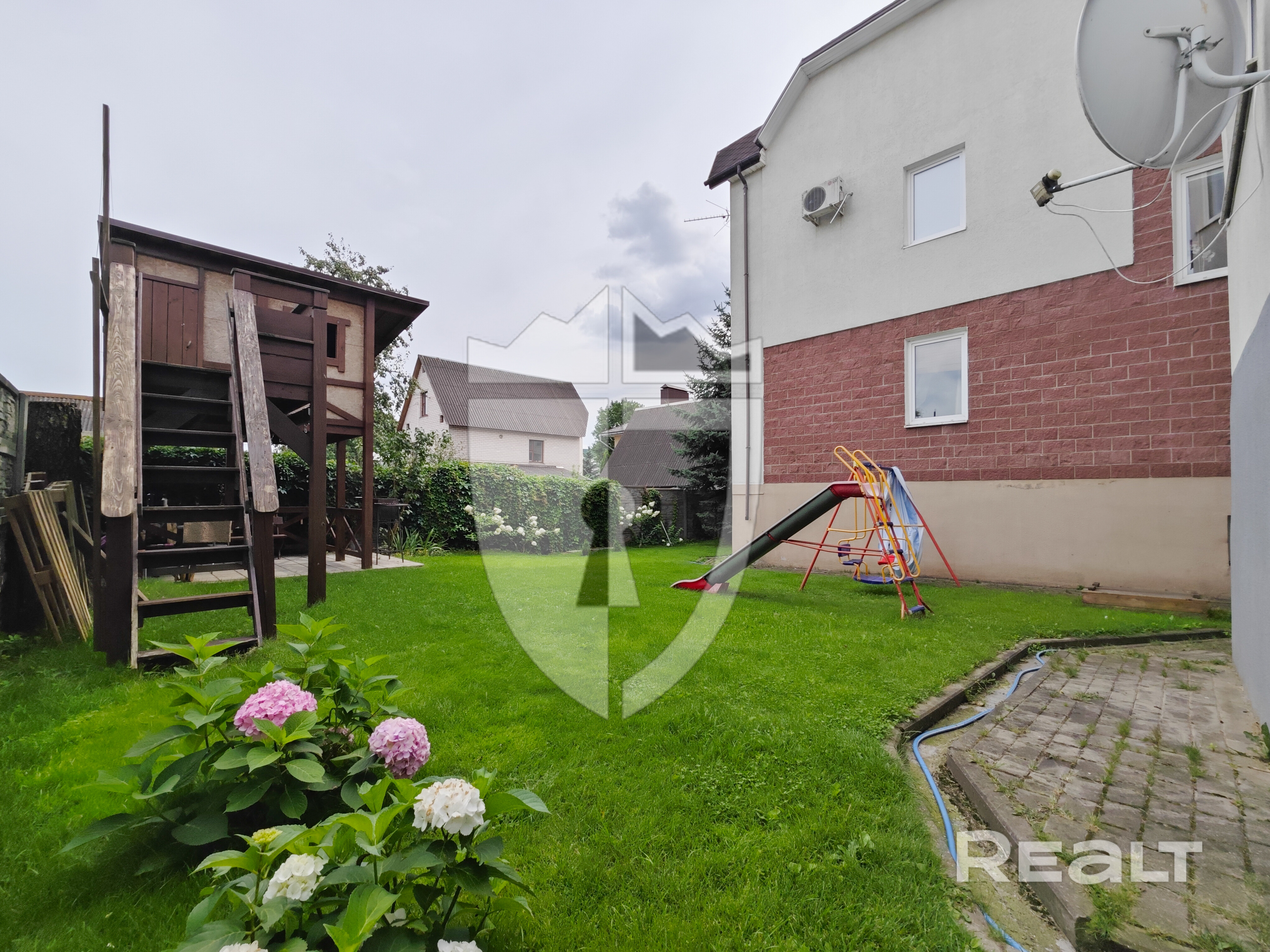 На территории детская площадка, мангал.